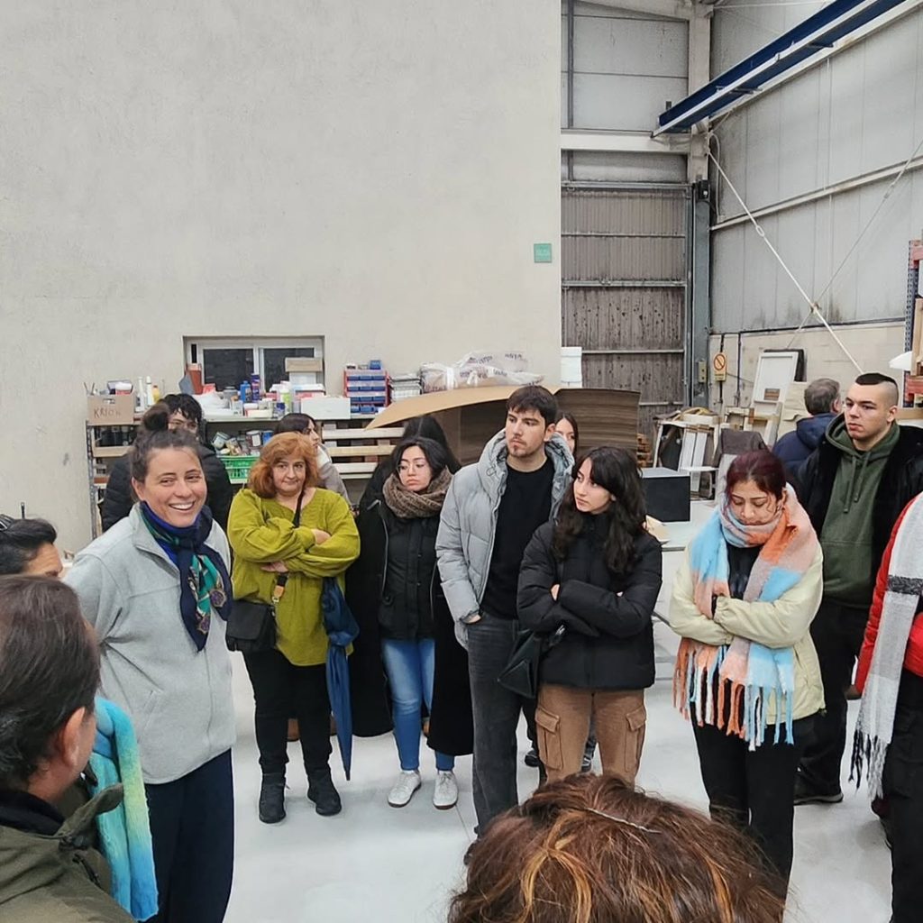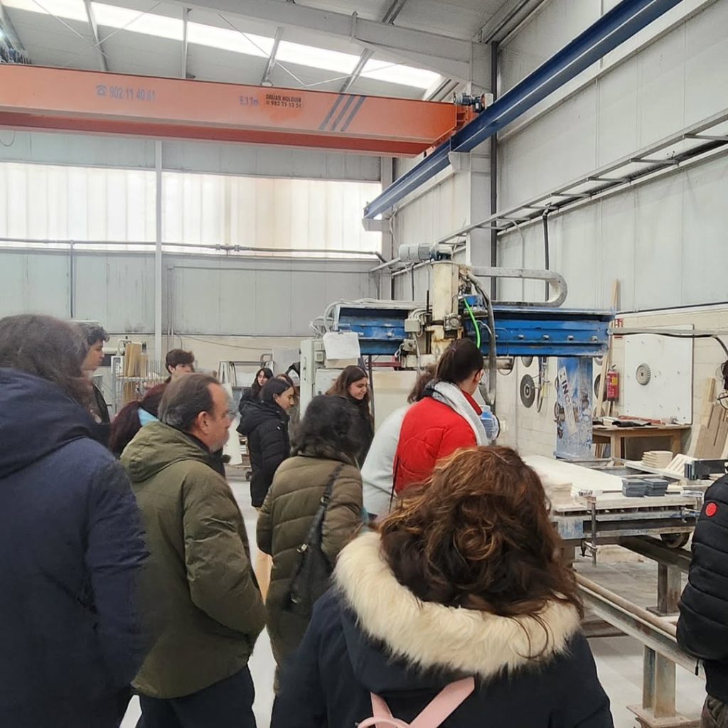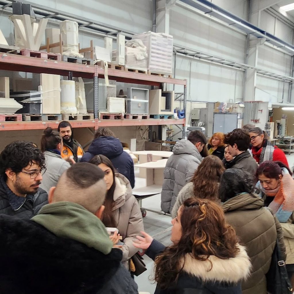 Tras esta introducción, los alumnos recorrieron nuestras instalaciones, pudiendo ver los procesos de fabricación, montaje y control de calidad, así como algunos de los materiales y soluciones constructivas que utilizamos en nuestros proyectos. Una oportunidad para entender cómo las decisiones de diseño se trasladan a la producción real y a las exigencias del uso cotidiano.