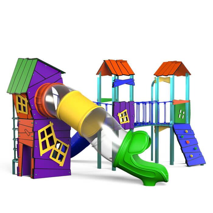 La Estructura Multijuego Baluchon de la serie Kabanias de MyParque es un espacio de juego dinámico que combina diversión y desarrollo. Este juego incluye una cabaña y dos torres conectadas mediante pasarelas, proporcionando un recorrido único para que los niños exploren y disfruten de distintas actividades. Equipado con toboganes de diferentes alturas, una red de escalada, un rocódromo y una barra de bomberos, Baluchon es ideal para parques y áreas recreativas que buscan un entorno atractivo y seguro para los más pequeños.