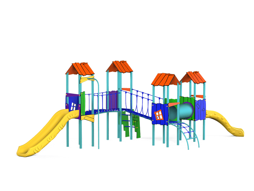 La Estructura Multijuego Carden de la serie Kabanias es perfecta para transformar cualquier área recreativa en un espacio de aventura. Este modelo incluye cuatro torres de diferentes alturas, conectadas por puentes, pasarelas y un tubo de gateo, brindando a los niños múltiples formas de explorar y moverse. Con dos toboganes de distintas alturas, una barra de bomberos, escalera y trepa de cuerda, Carden fomenta el juego activo y la exploración en un entorno seguro.