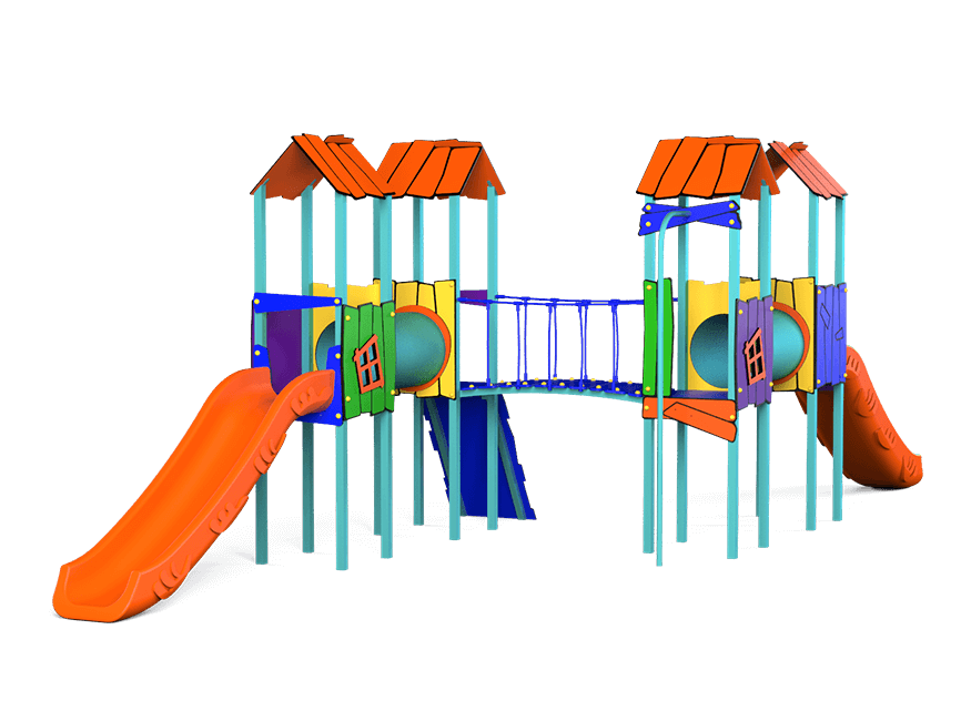 Con un diseño moderno y colorido, Creek destaca en cualquier espacio. Sus componentes fomentan la actividad física y el desarrollo motor, ya que los niños pueden escalar, deslizarse y balancearse en un entorno lleno de opciones. Los puentes y tubos de gateo permiten una transición divertida entre las torres, mientras que los toboganes de diferentes alturas y el rocódromo desafían las habilidades motoras de los niños, haciéndolo un espacio que invita a la exploración y la creatividad.