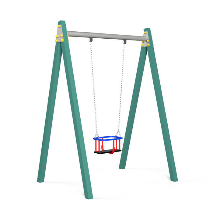 El Columpio Kabanias Cuna está diseñado pensando en los más pequeños, ofreciendo un balanceo suave y seguro. Equipado con un asiento cuna, este columpio es ideal para niños que comienzan a explorar el mundo del juego en parques infantiles.