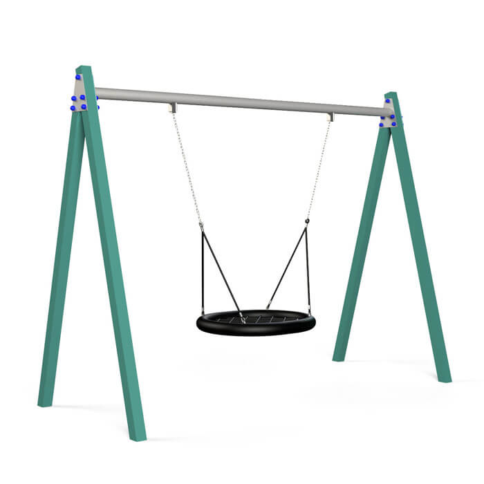 Fabricado con acero lacado al horno y una cesta de cuerda de polipropileno reforzada, el Columpio Nido garantiza durabilidad, estabilidad y seguridad frente al uso diario y las condiciones climáticas adversas. Su diseño robusto asegura un mantenimiento sencillo y una larga vida útil.