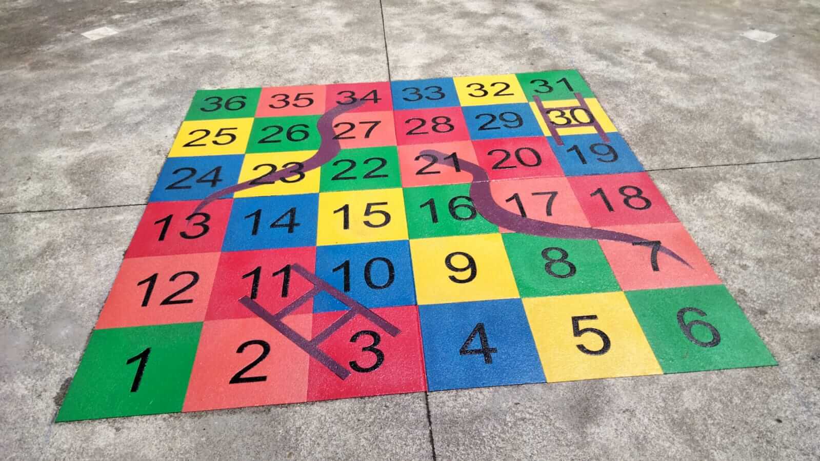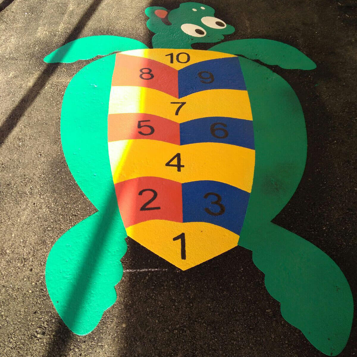 Los Suelos Termoplásticos son una solución ideal para añadir seguridad, color y creatividad a los parques infantiles. Estos pavimentos se instalan directamente sobre el suelo, creando una superficie acolchada y antideslizante que reduce el riesgo de lesiones por caídas. Además, permiten realizar diseños personalizados, como la divertida tortuga numerada de la imagen, que aportan un valor lúdico y educativo al espacio de juego.