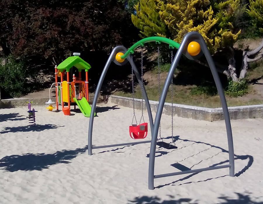 Construido con acero galvanizado de alta resistencia y polietileno de baja densidad (LDPE), el Columpio Mixto está diseñado para soportar el uso diario y las condiciones climáticas adversas. Su combinación de materiales garantiza ligereza, elasticidad y durabilidad, convirtiéndolo en una opción fiable y segura para cualquier parque infantil.