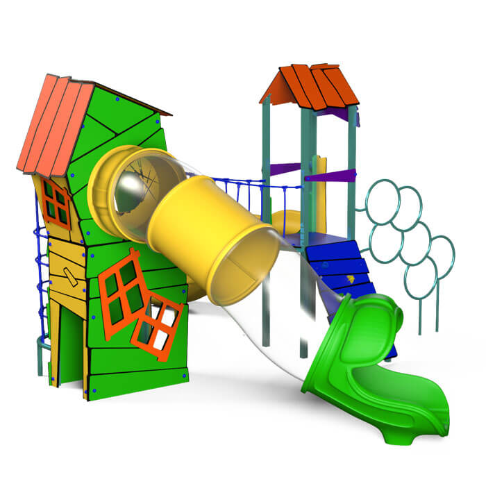 La Estructura Multijuego Baluchon de la serie Kabanias de MyParque es un espacio de juego dinámico que combina diversión y desarrollo. Este juego incluye una cabaña y dos torres conectadas mediante pasarelas, proporcionando un recorrido único para que los niños exploren y disfruten de distintas actividades. Equipado con toboganes de diferentes alturas, una red de escalada, un rocódromo y una barra de bomberos, Baluchon es ideal para parques y áreas recreativas que buscan un entorno atractivo y seguro para los más pequeños.