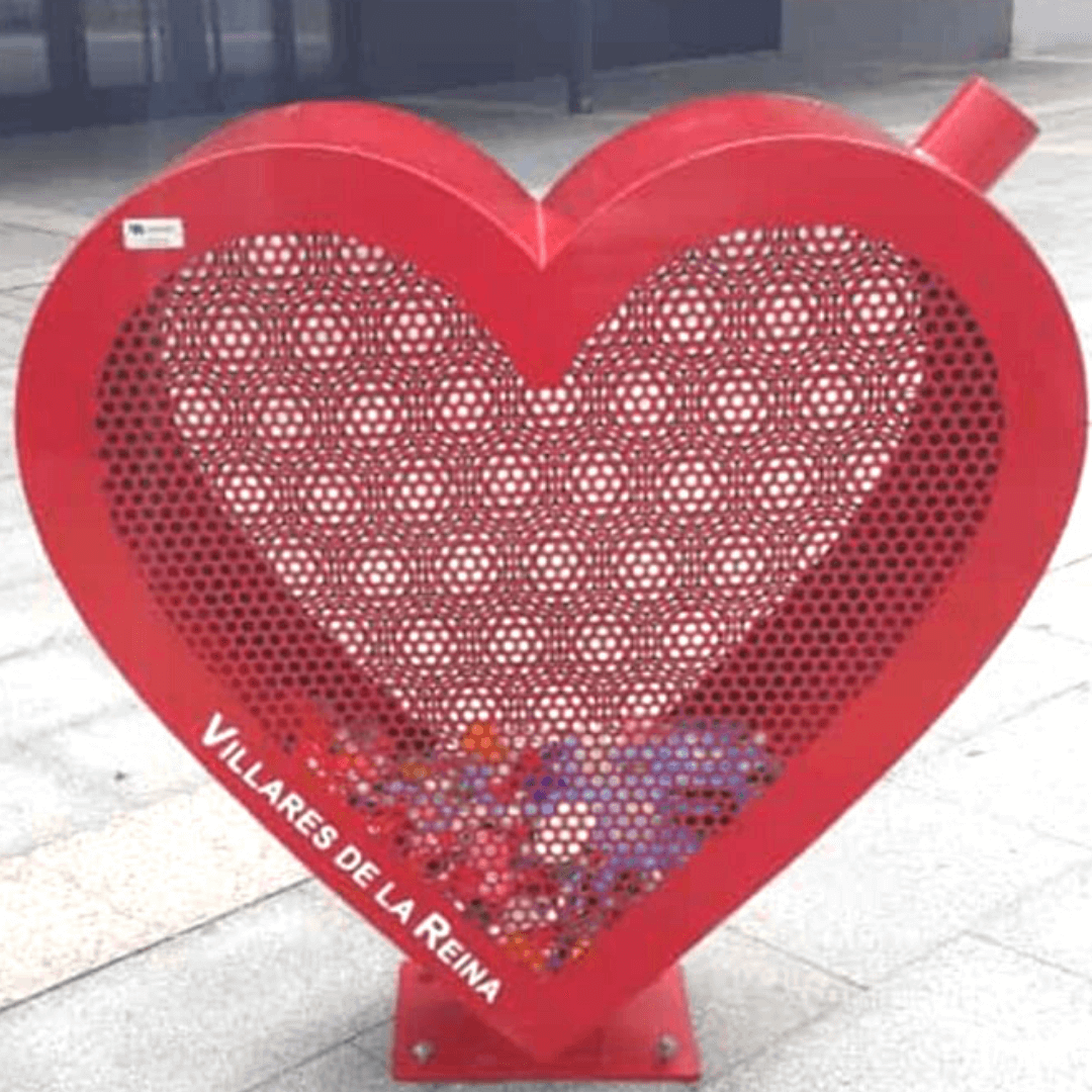 Elemento urbano pensado para la el almacenamiento y posterior recogida de tapones de plástico desechados.