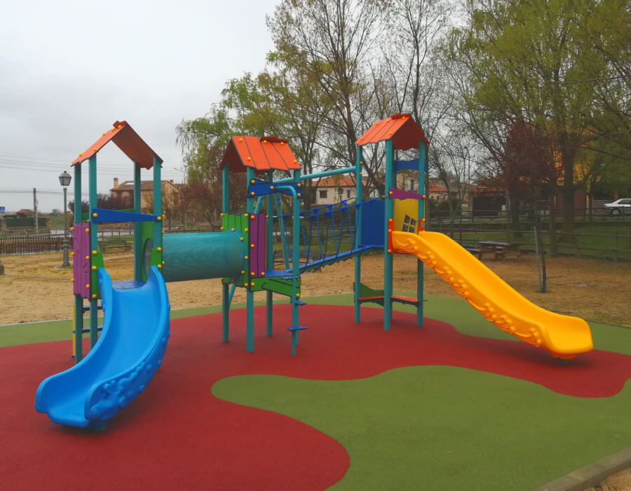 La estructura multijuego Kemwood de la serie Kabanias de MyParque es una solución de juego ideal para áreas recreativas y parques. Diseñada con tres torres interconectadas mediante pasarelas y tubos de gateo, Kemwood incluye toboganes de distintas alturas, una red de escalada, barra de bomberos, escalera y columpio uniplaza. Este diseño ofrece un entorno seguro y estimulante, fomentando el desarrollo físico y motor en un solo espacio.