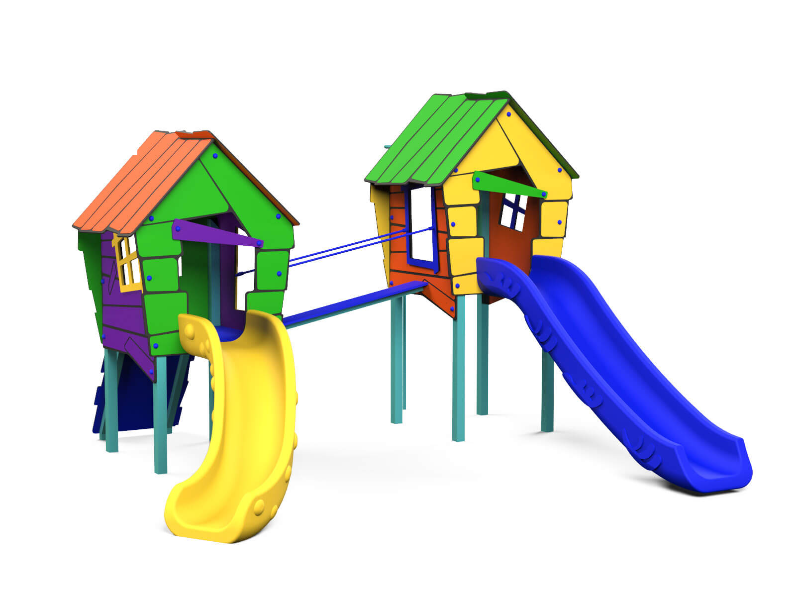 La estructura multijuego Nahuel de la serie Kabanias de MyParque ofrece una experiencia completa de juego en un entorno seguro y llamativo. Esta estructura está equipada con toboganes de diferentes alturas, un rocódromo, una barra de bomberos y una pasarela de equilibrio, promoviendo así el desarrollo físico y psicomotor de los niños en espacios públicos y áreas recreativas.