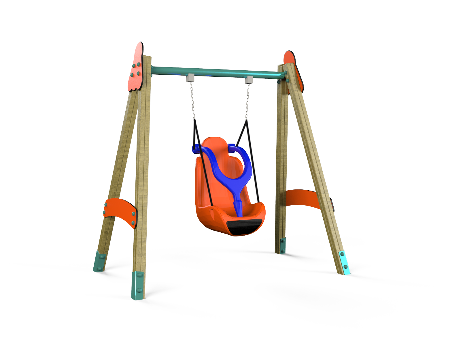 Parte de la serie Phineas, este columpio combina la madera laminada de pino escandinavo tratada en autoclave con placas de HDPE coloridas, logrando una estética cuidada y sofisticada que se integra perfectamente en cualquier espacio recreativo. Su diseño inclusivo permite que todos los niños se sientan bienvenidos y seguros.
