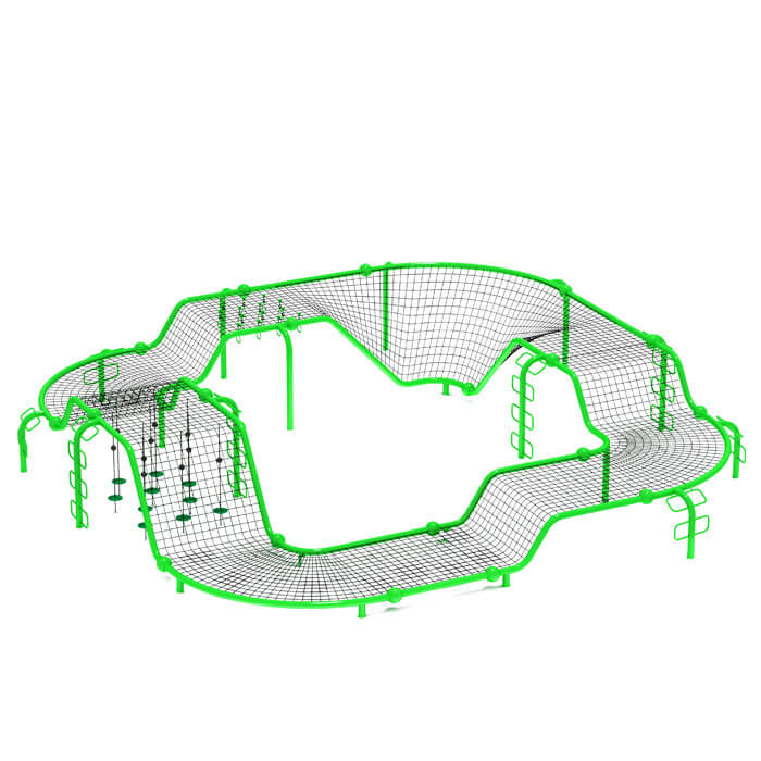 Fabricada con acero galvanizado y redes de cuerda reforzadas, la estructura Tepuy está diseñada para resistir el uso intensivo y las condiciones climáticas adversas. Estos materiales aseguran una durabilidad excepcional y un mantenimiento mínimo, haciendo de Tepuy una opción confiable para áreas de recreo al aire libre.