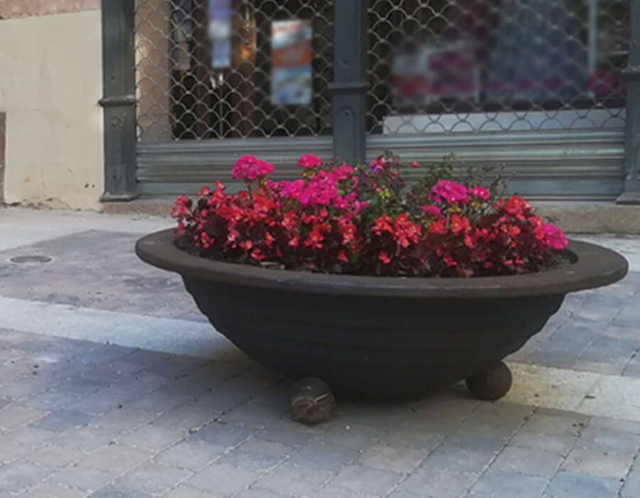 Jardinera Toscana DIM 900 es una jardinera urbana con un diseño esférico elegante, pensada para embellecer espacios exteriores con un toque clásico. Su forma armónica y su base decorativa en forma de flor permiten una integración visual sencilla en todo tipo de entornos urbanos o institucionales.