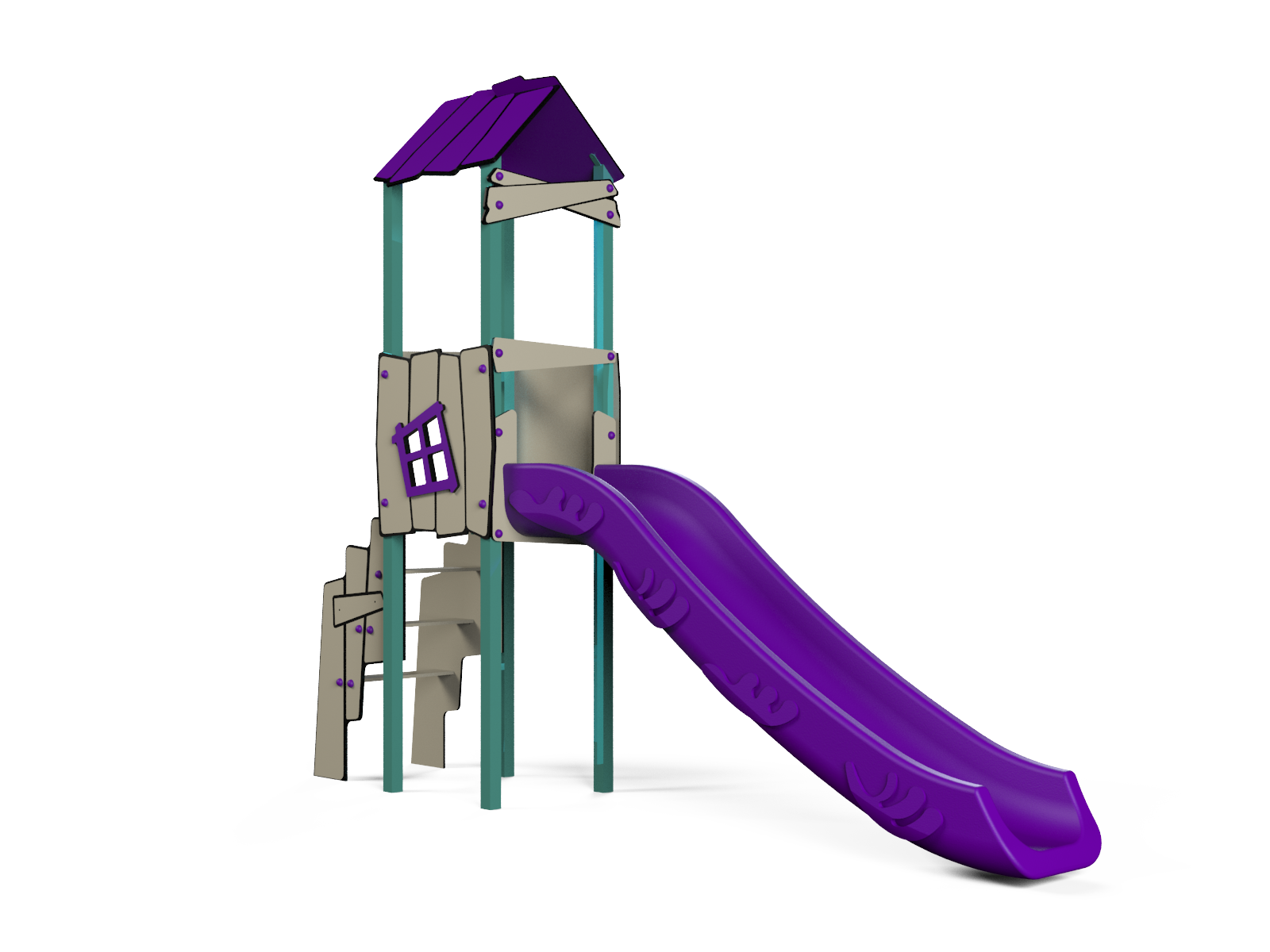 La estructura multijuego Zeleb de la serie Kabanias de MyParque es ideal para áreas recreativas que buscan un espacio compacto y seguro. Compuesta por una torre central equipada con un tobogán y una escalera, Zeleb proporciona una experiencia de juego sencilla y divertida, adecuada para parques públicos y zonas infantiles.