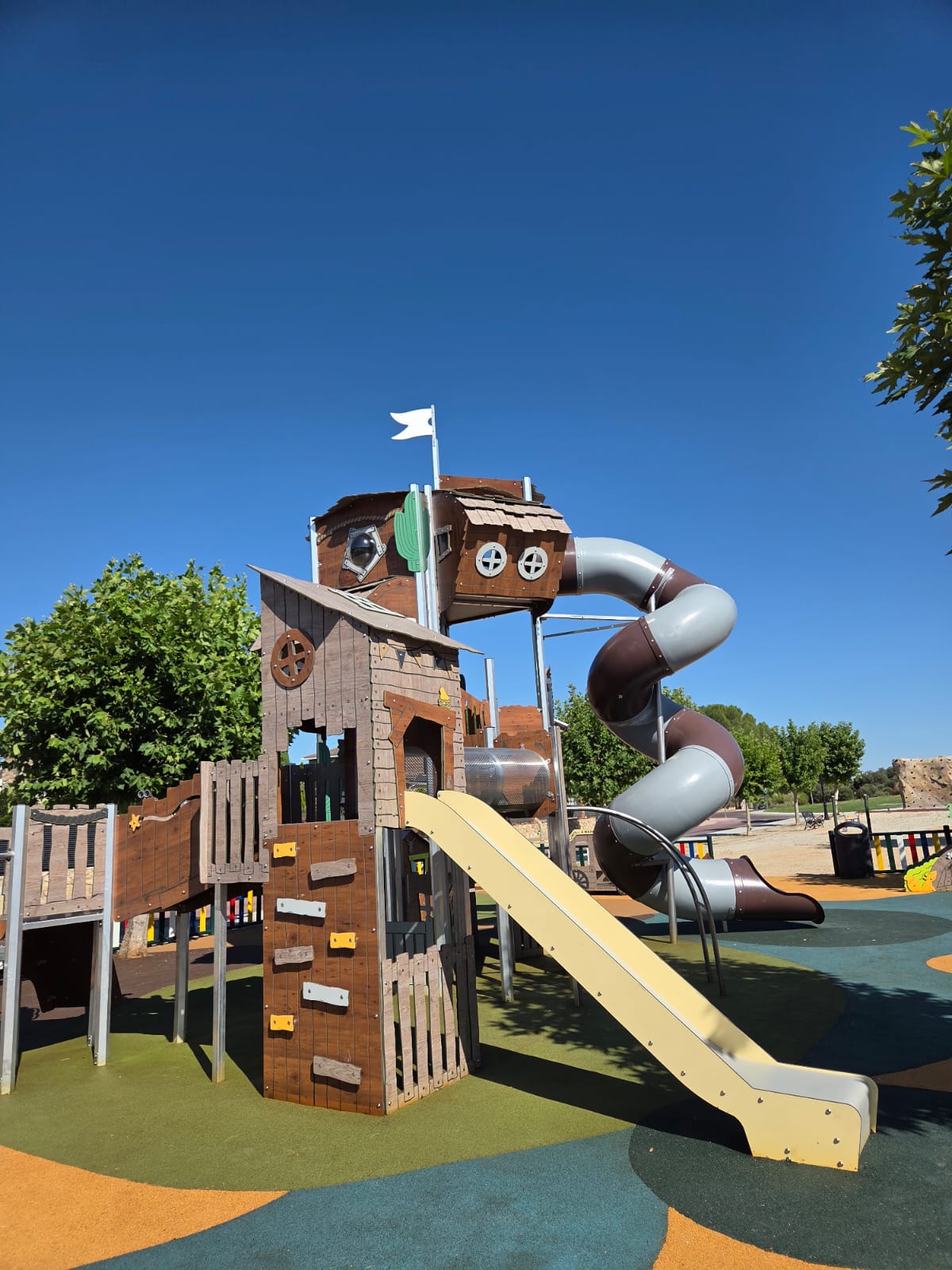MyParque, en colaboración con Quali-Cité, ha desarrollado un parque infantil temático en Aldea del Fresno (Madrid), concebido como un espacio de juego de gran formato donde la aventura y la exploración marcan la experiencia lúdica.