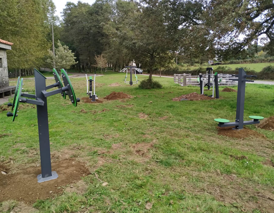 Zona enmarcada en la naturaleza para realizar ejercicio en un parque de elementos biosaludables.