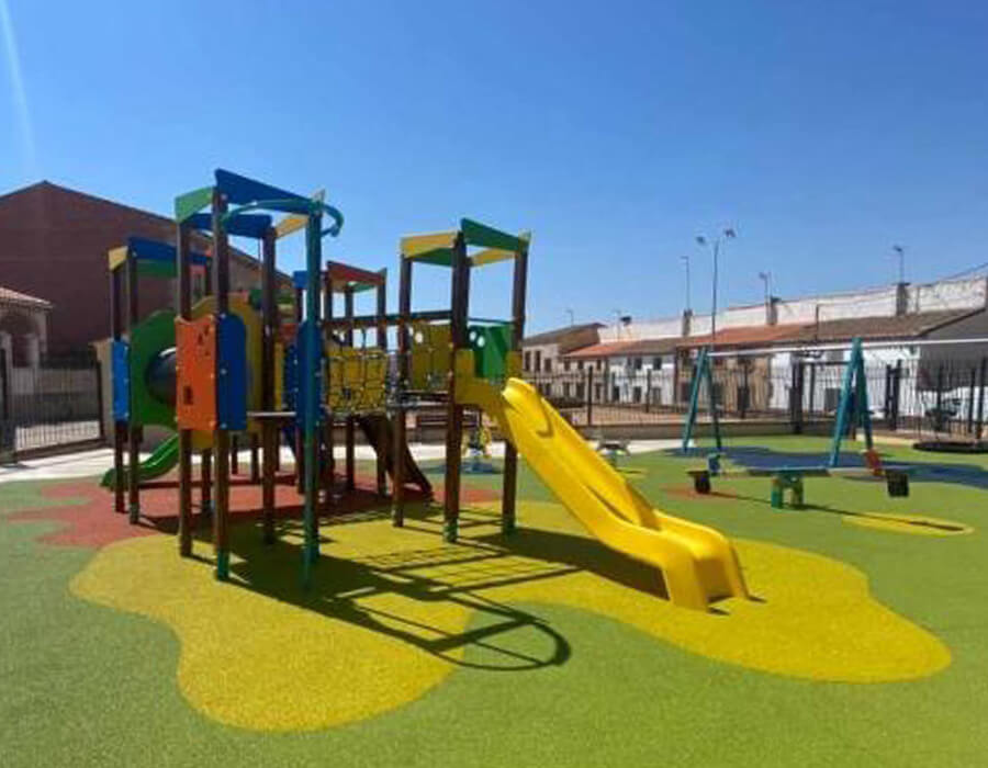 Se ha habilitado una nueva zona infantil con una estructura Marsa de la serie Phineas, varios muelles y balancines y un columpio serie Ka de doble pórtico con asientos nido, cuna y plano y pavimento continuo de seguridad, acompañado de varios bancos modelo Alcobendas fabricados con madera técnica.