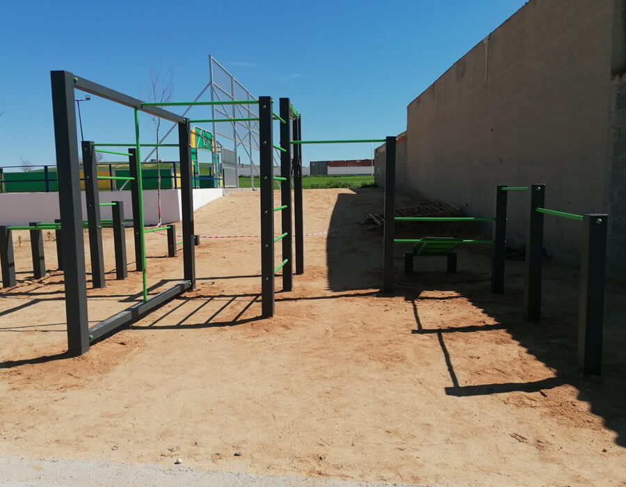 El ayuntamiento ha apostado por acondicionar una zona para los más peques con una estructura Maluc de la serie Phineas con varios toboganes y variados juegos donde desarrollar la imaginación y la psicomotricidad y otra zona para la actividad física de los no tan peques con un set de calistenia.